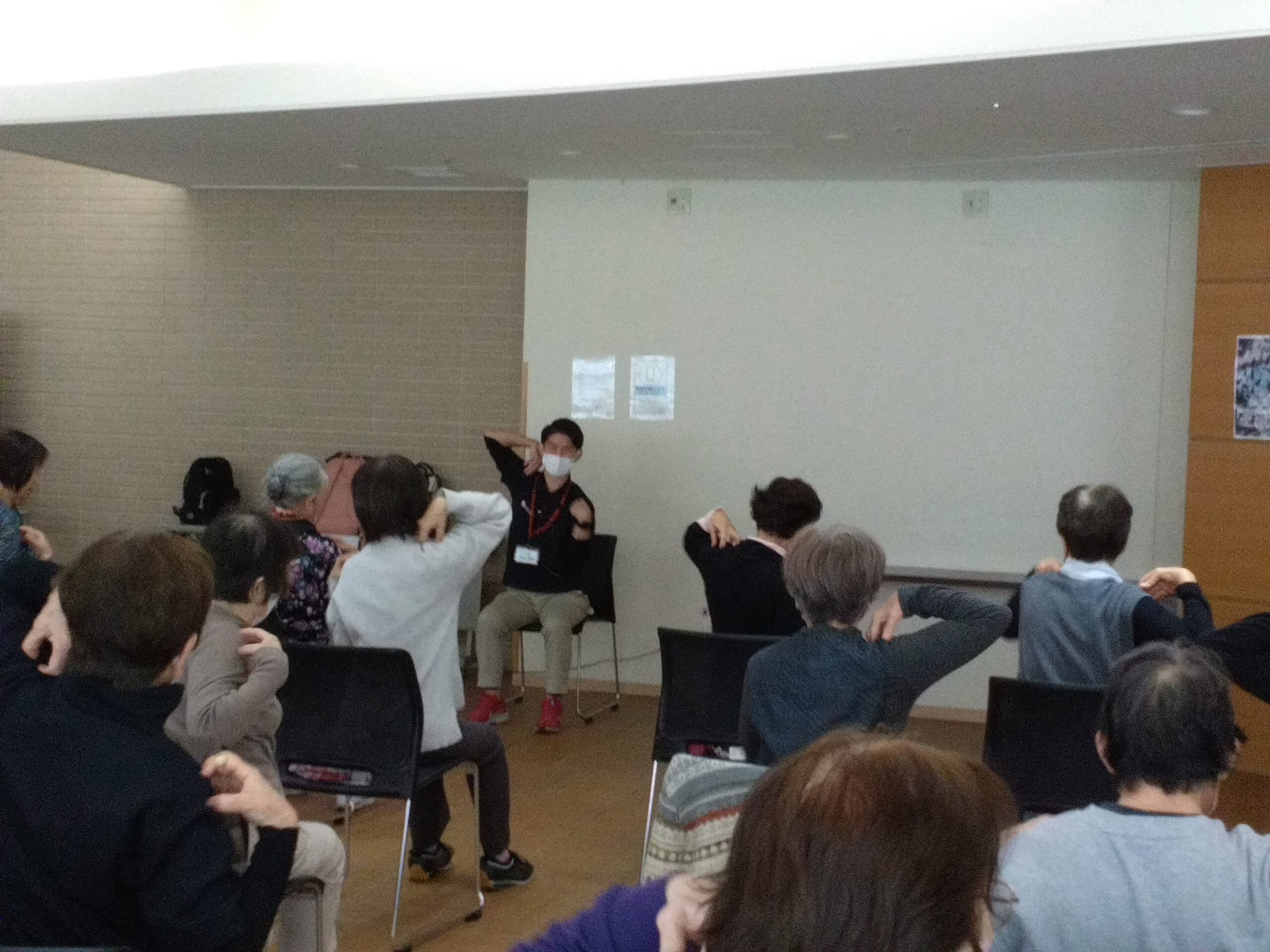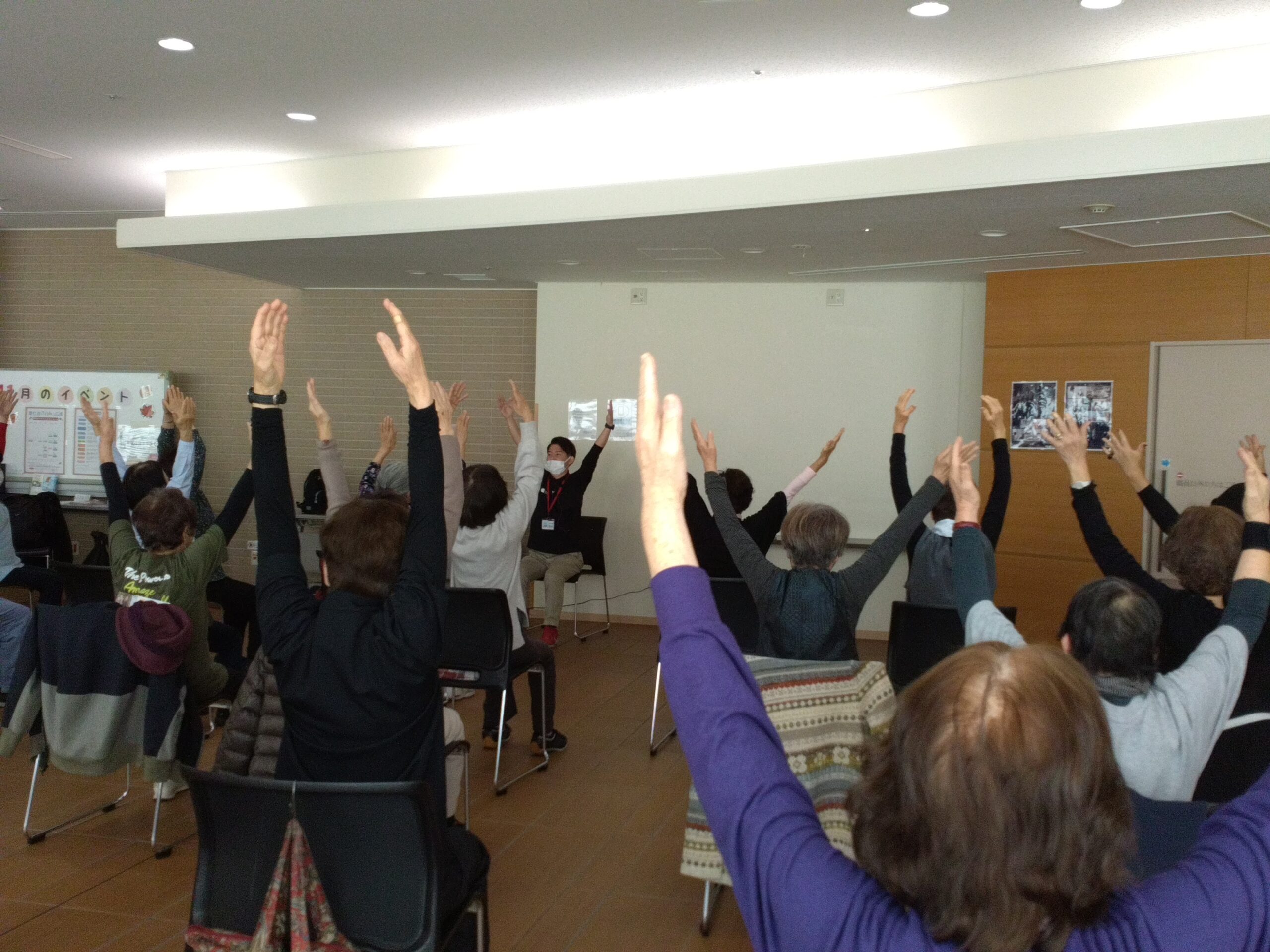 そして後半も、全身運動に筋力アップ運動を組み込みながら最後は「浜辺の歌」でクールダウンです。座ってする人、立ってする人とご自身のペースでやっていただけてよかったです。