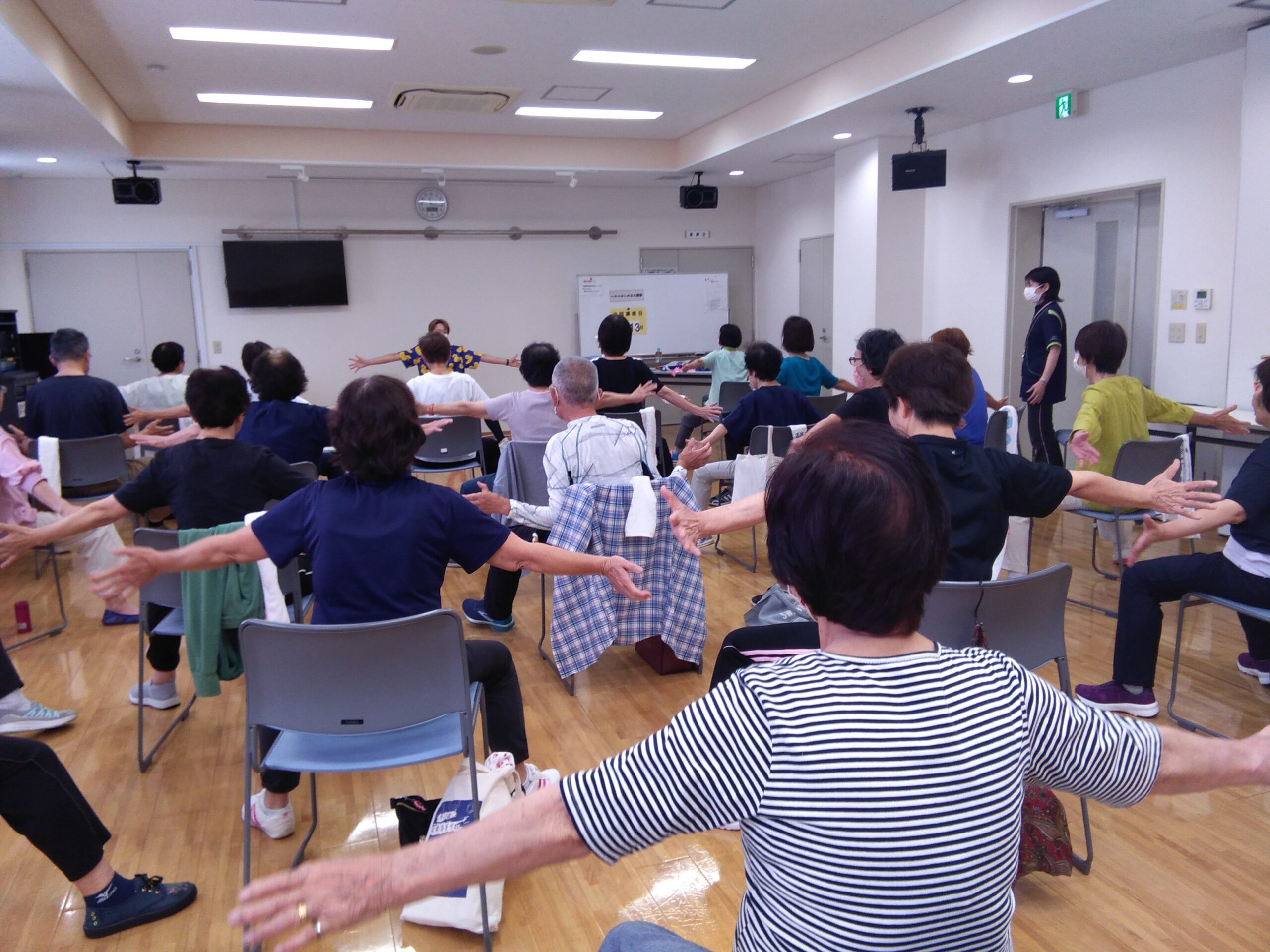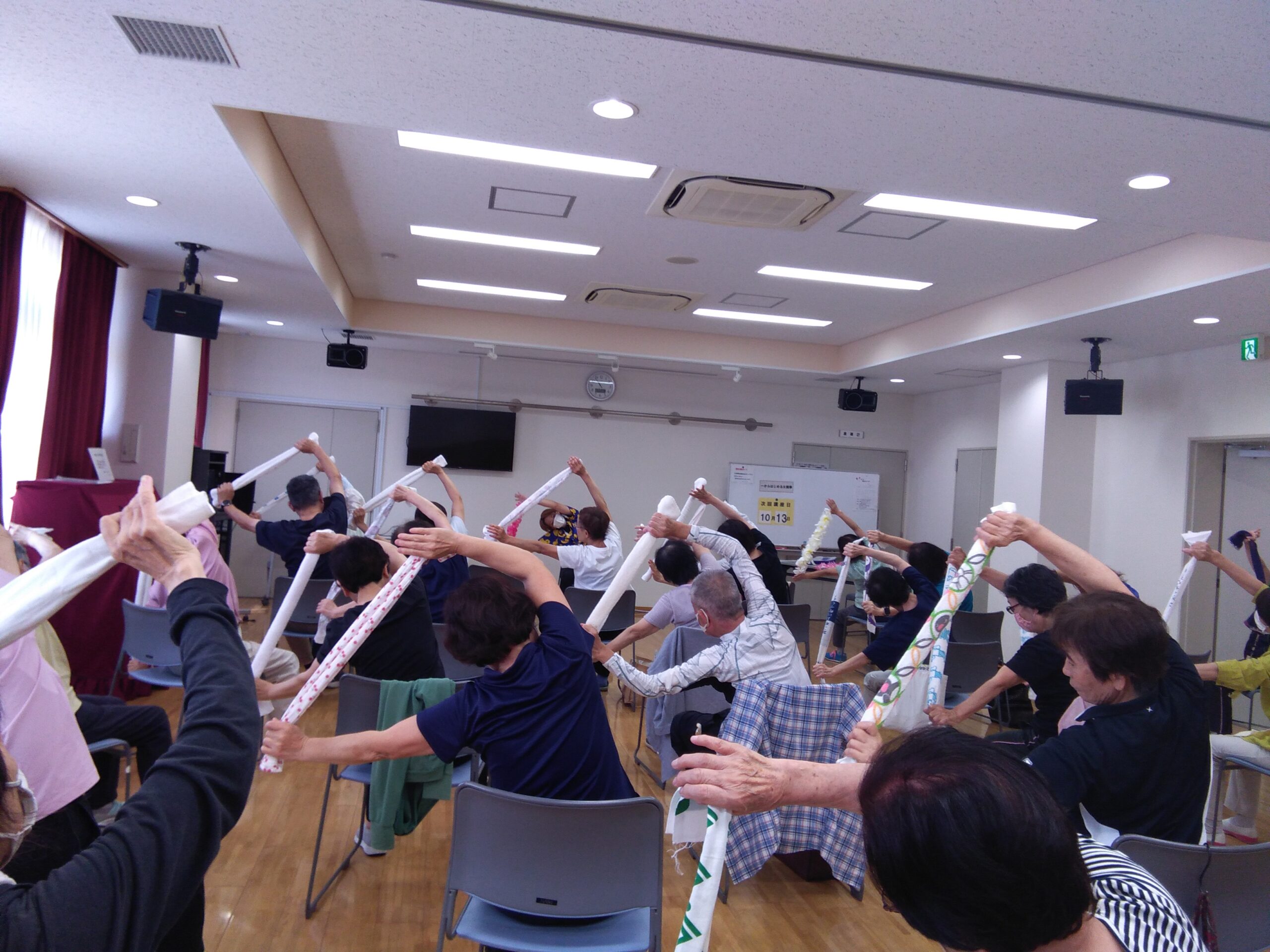 そして後半も、全身運動に筋力アップ運動を組み込みながら最後は「浜辺の歌」でクールダウンです。座ってする人、立ってする人とご自身のペースでやっていただけてよかったです。