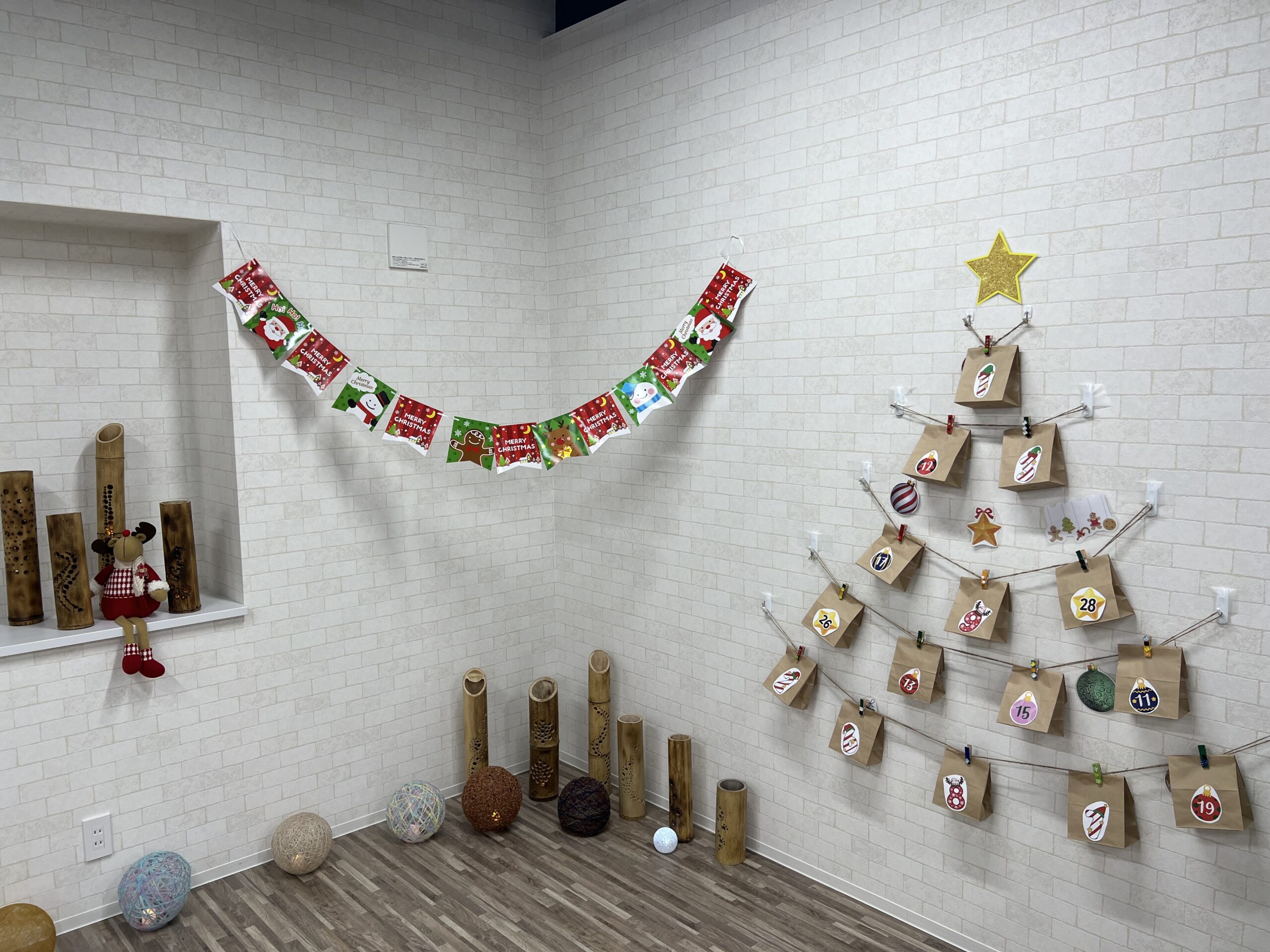↑竹あかりやランプシェードでライトアップ!参加賞はアドベントカレンダー風に飾り付け☺