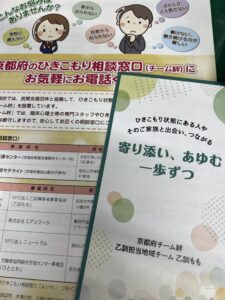 情報交換会では、これまでの取組や今後の展望について意見交換を行いました。乙訓ももさんとらいむらいとは、ひきこもり支援ネットワークという点では同じですが、それぞれで地域の特色に応じた活動をしていることもあり、これまでとは違った視点の活動をお聞きすることができ大変学びの多い機会になりました。